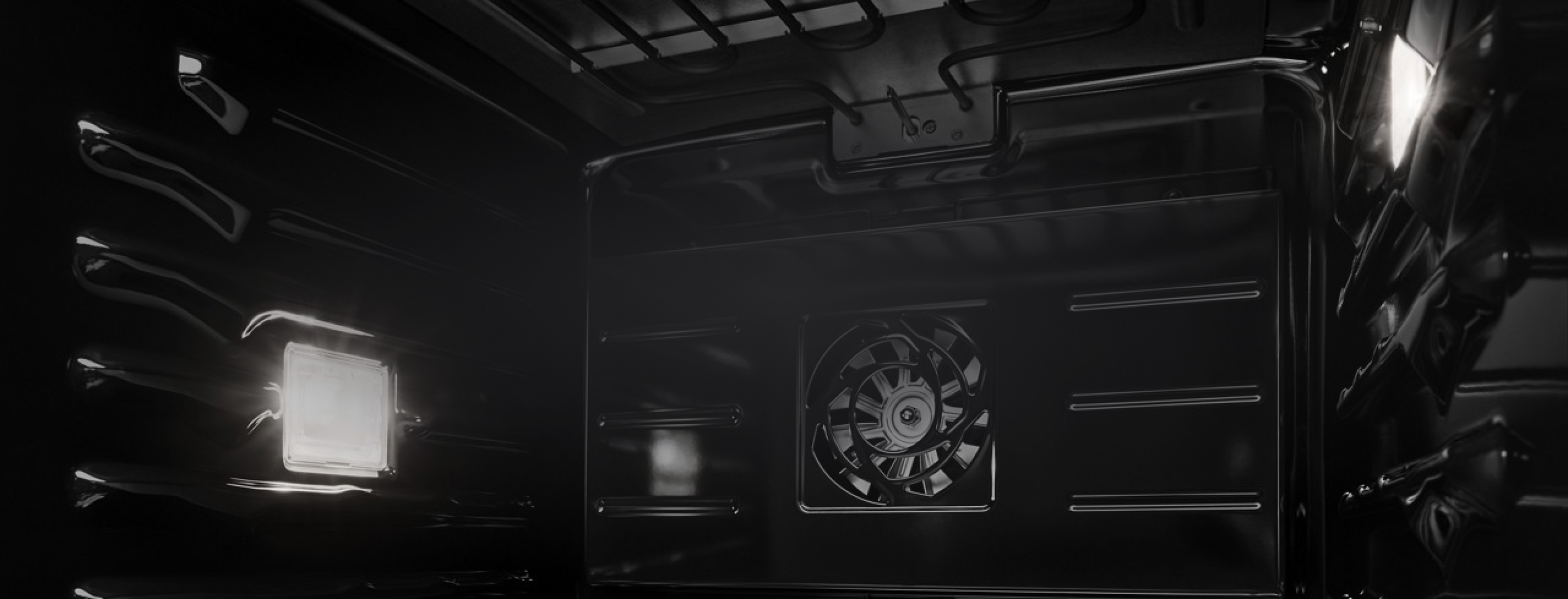 Dual counter-rotating vertical fans work in tandem to circulate hot air around the top and bottom racks. The two fans drive the air throughout the cavity where you need it most for flaky bakery-style pastries, caramelized roasted vegetables and to transform marbled meats into succulent roasts.