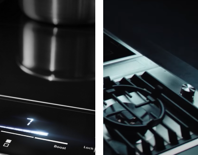 Induction cooktops or ranges use electricity yet produce heat through electromagnets. This not only makes them a safer option but it also enables an increase in cooking speed, offers greater temperature control and is easier to clean than gas or electric ranges or cooktops.