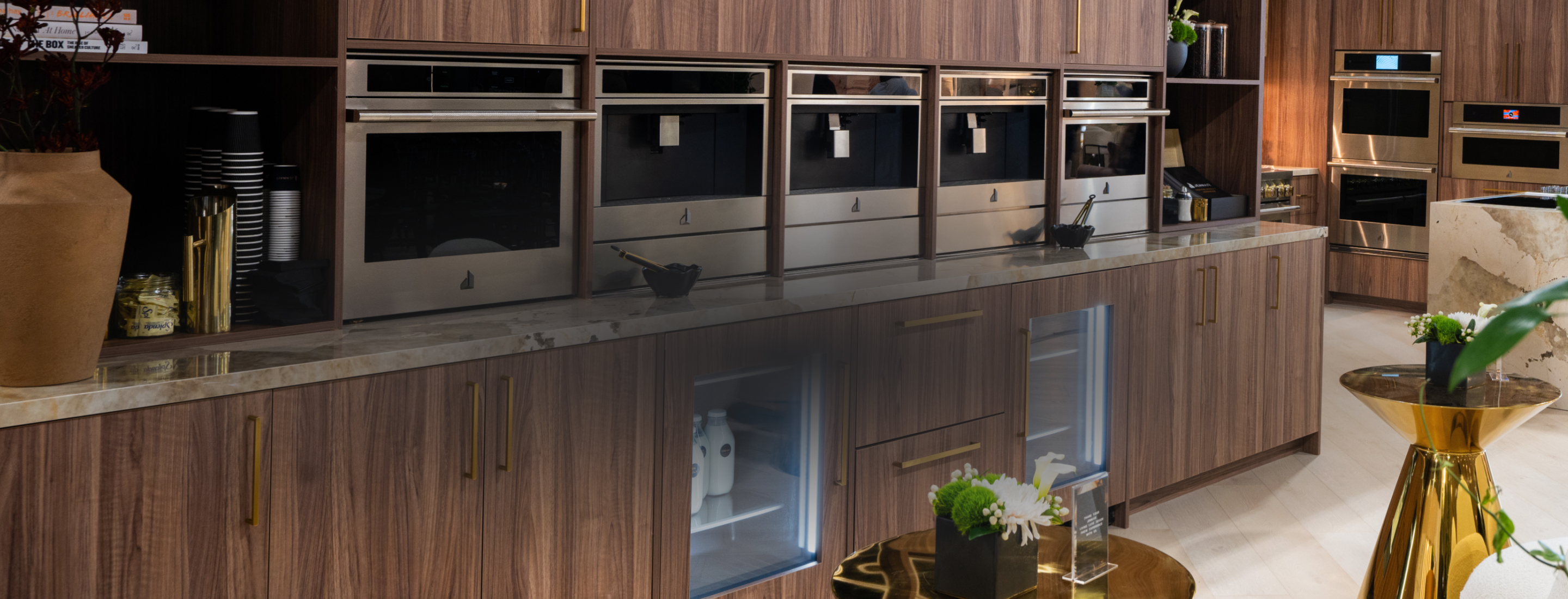 Our immersive booth was designed by our brand partners, Brenda Danso and Aleem Kassam. The brand also unveiled several new products, including our first-ever professional-style induction range and the long-awaited JennAir Leather Cuts Panel Collection for the JennAir brand lineup of Column Refrigeration.