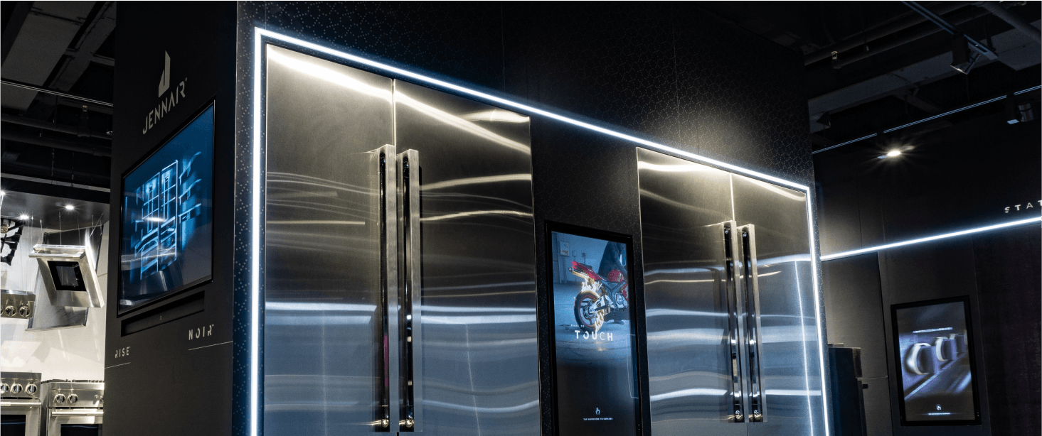 Scroll to reveal visceral features and distinctive designs of column, built-in, freestanding, and undercounter refrigeration.